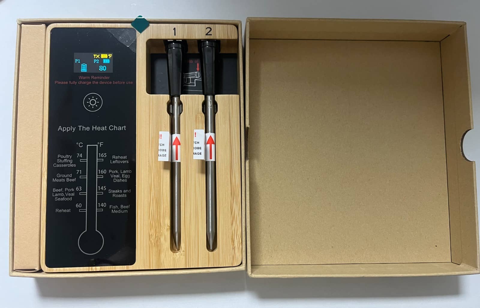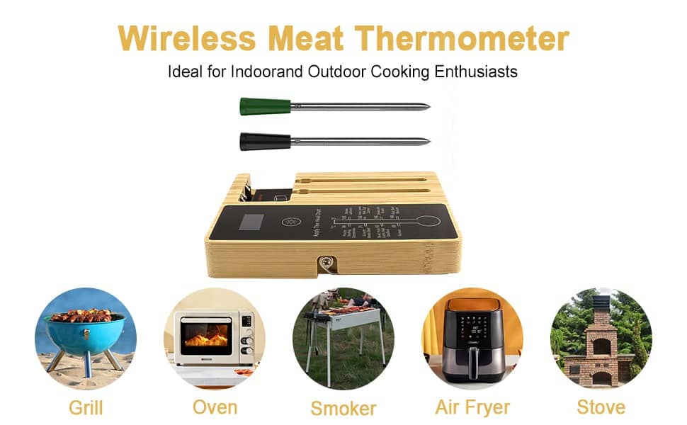 FM220 je bežični pametni termometar s dvije sonde, idealan za roštilj, pećnicu, smoker, air fryer ili kuhanje na štednjaku. Ovaj uređaj omogućuje ti da precizno pratiš unutarnju temperaturu mesa, ali i temperaturu okoline, pružajući vrhunsku kontrolu nad pripremom hrane.