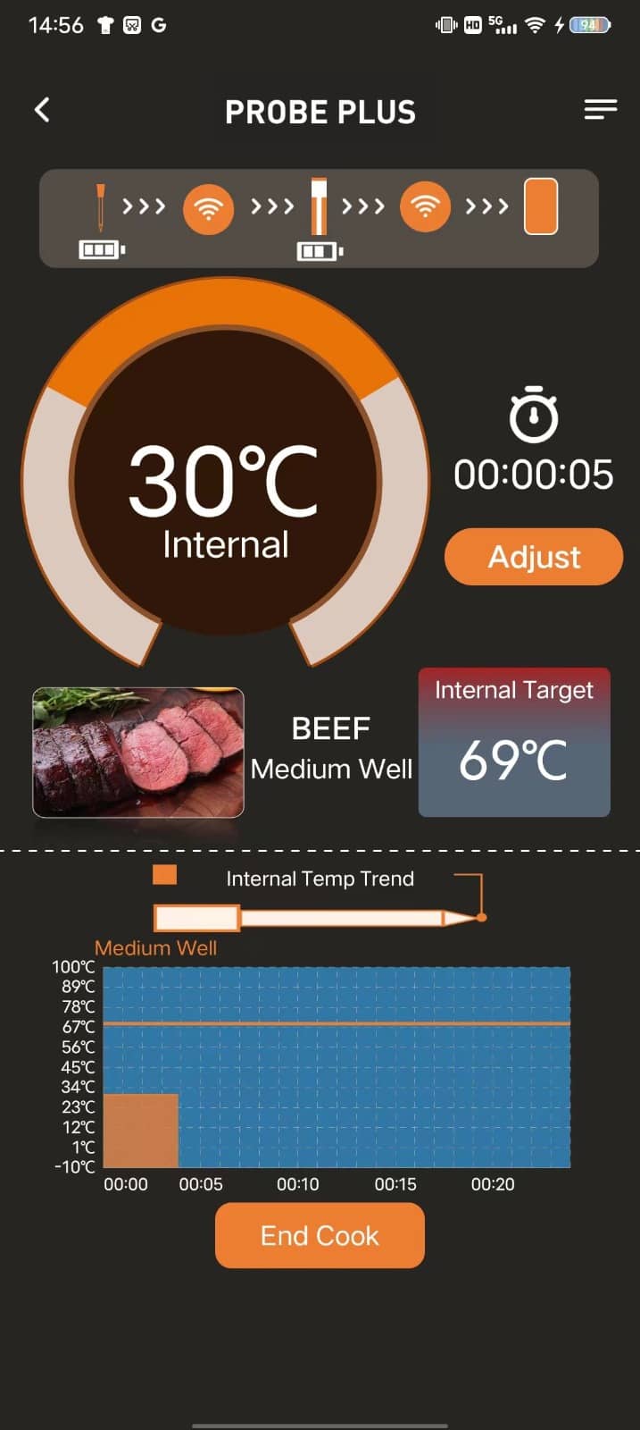 - Podešavanje ciljane temperature za različite vrste mesa (npr. medium, well-done)