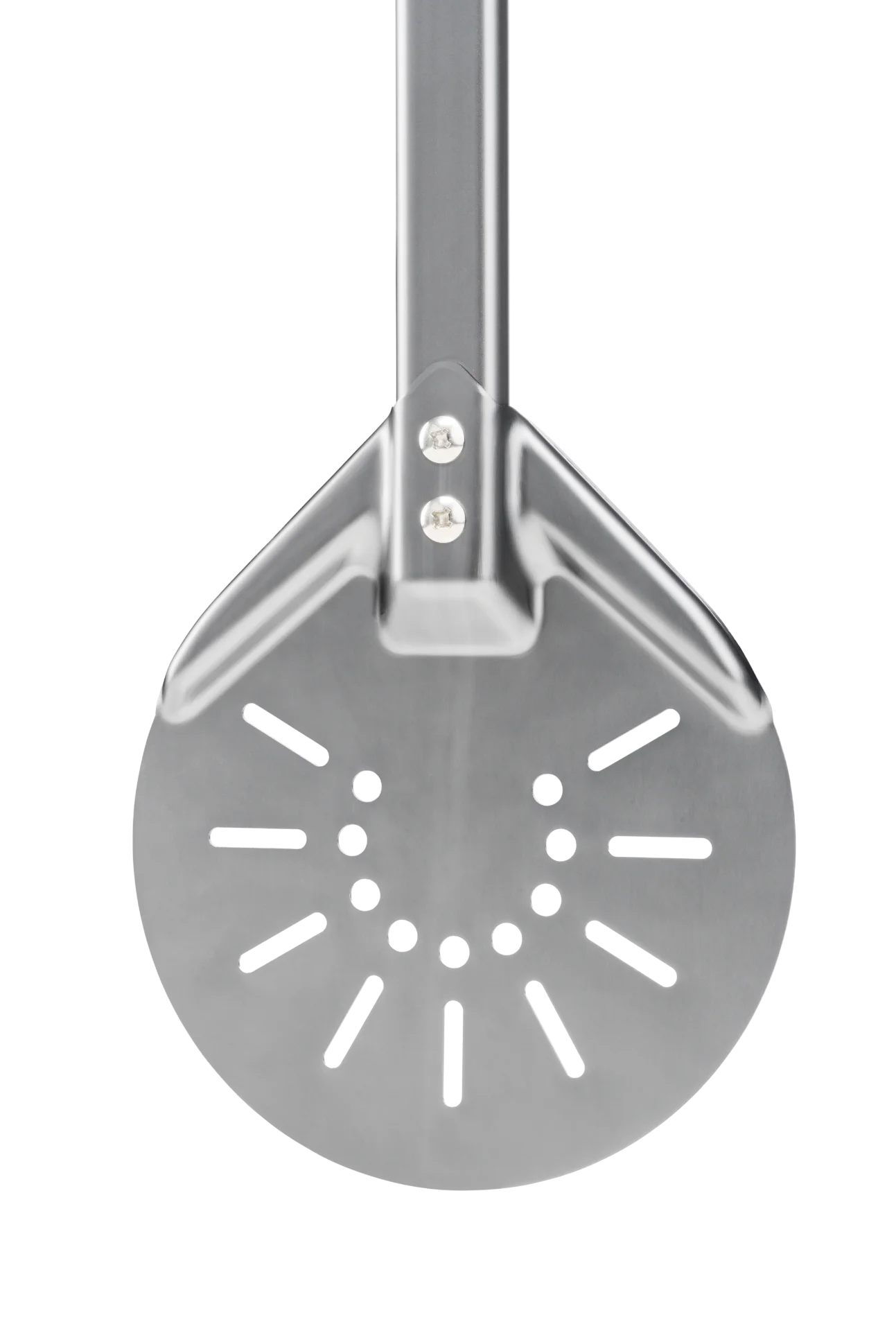 Kvalitetna okrugla lopatica za pizzu omogućuje jednostavno okretanje pizze unutar pećnice. Duljina lopatice: 60,6 cm. Promjer baze: 17,8 cm. Izrađena od aluminija.
