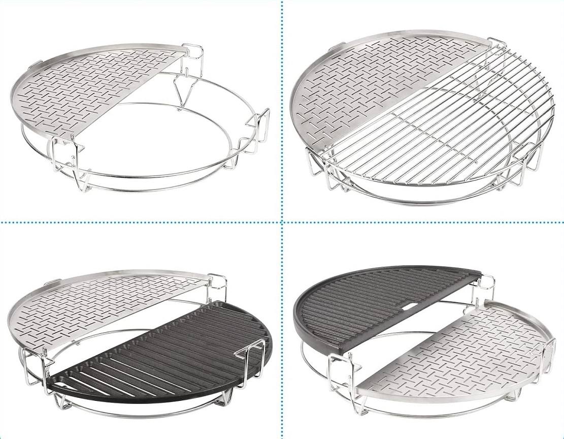 Ploča od nehrđajućeg čelika s malim rupama ili perforacijama može se koristiti uz sustav Divide and Conquer koji se često koristi u kamado roštiljima, te se kombinira sa drugim dodacima za izravno ili neizravno pečenje.