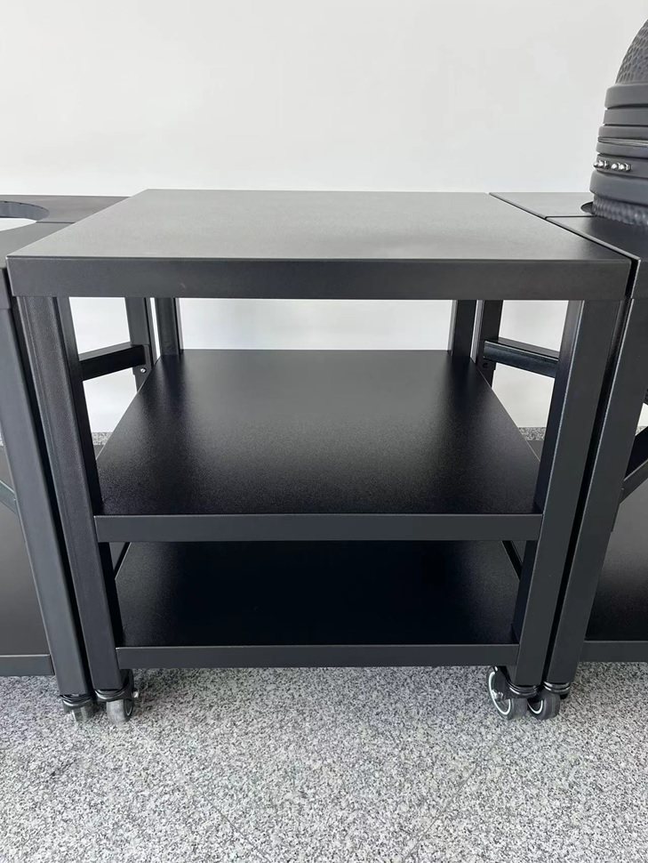 Pomoćni stol za kamado roštilj – mat crni, s kotačima