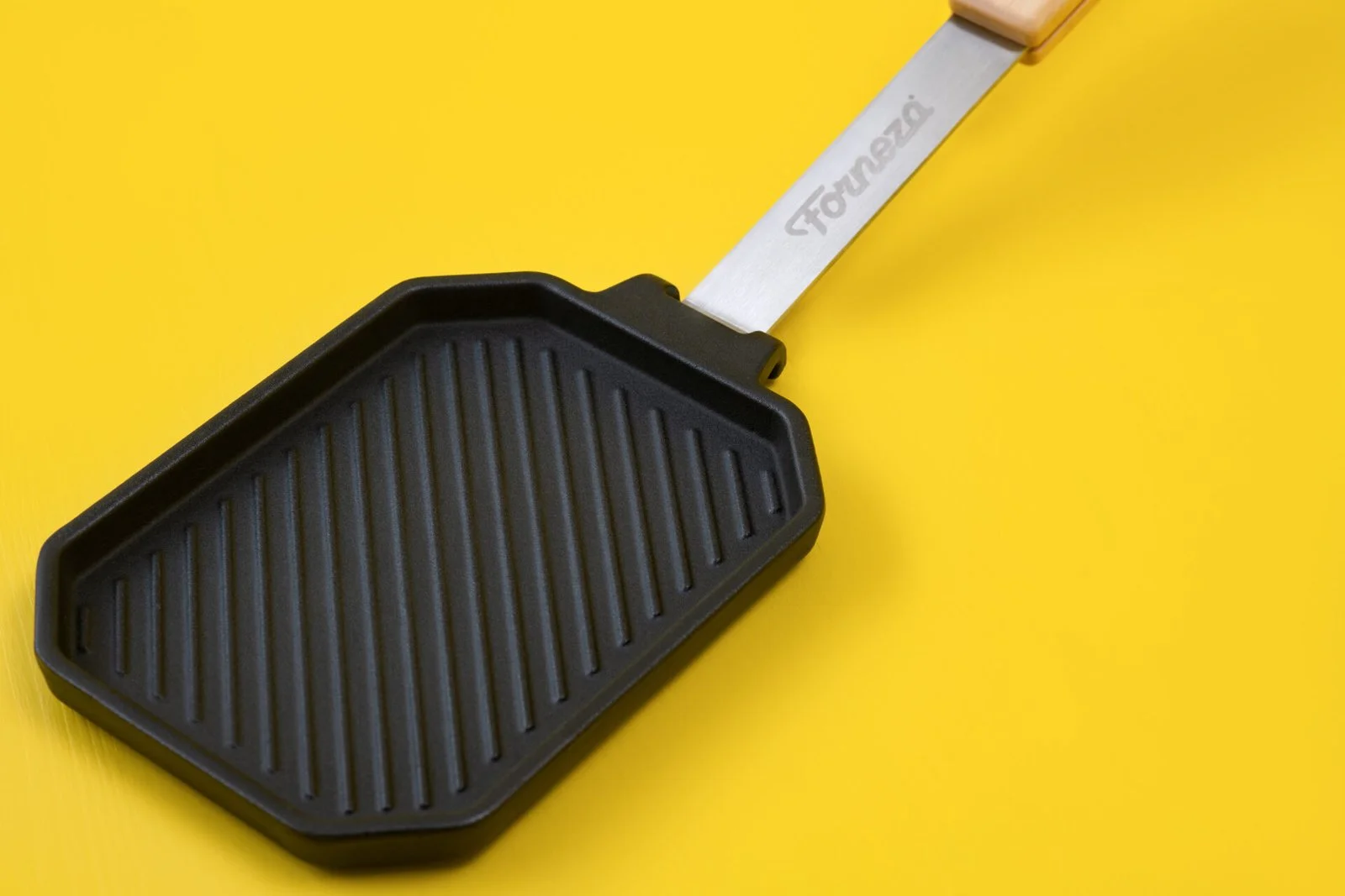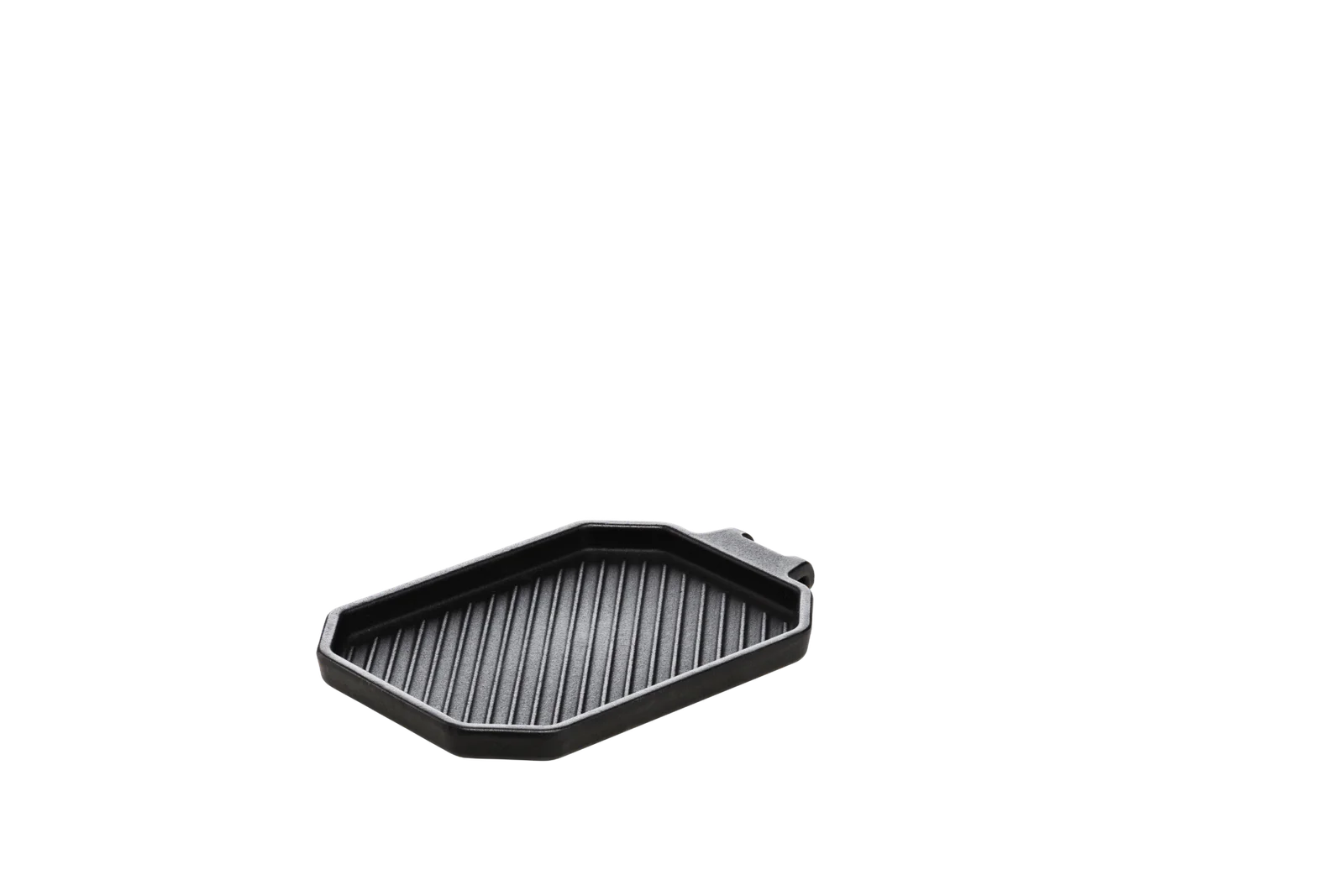 Lijevana tava s ručkom. Ukupna duljina s ručkom: 51,2 cm. Dimenzije površine od lijevanog željeza: 16,4 × 24,5 cm. Lijevani dio je tvornički već pripremljen za upotrebu, stoga nije potrebna dodatna priprema. Tava je rebrasta, a ručka se može ukloniti (npr. za korištenje u pećnici). Hrana pripremljena u njoj dobiva lijepi uzorak „grill crta“.