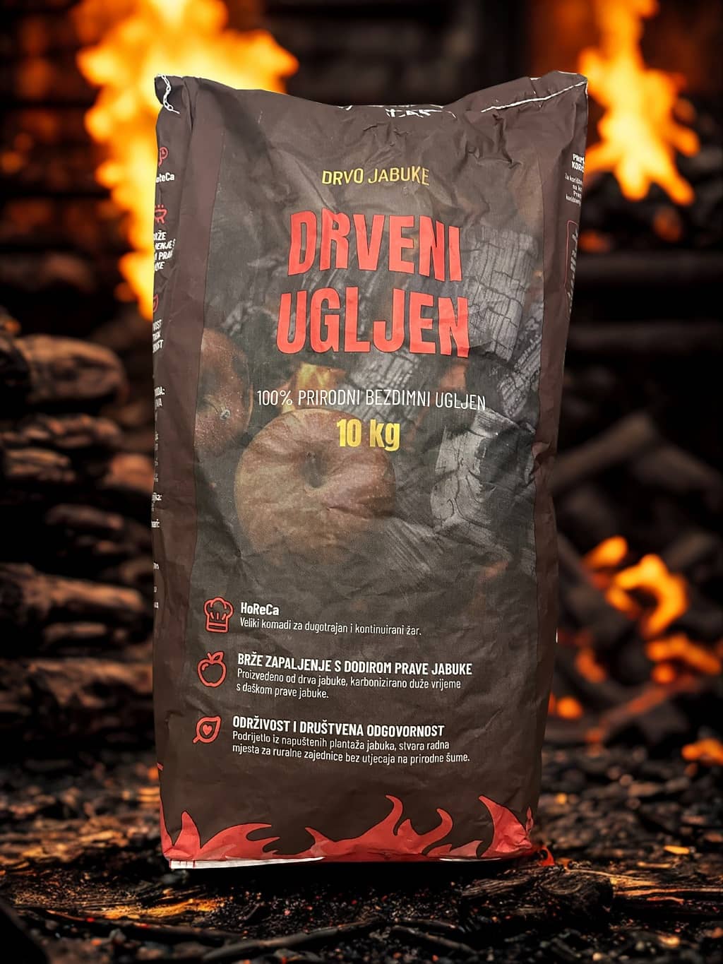 ROSALES ugljen izrađen je od 100% prirodnog jabukinog drveta, pažljivo karboniziranog kako bi pružio visoku temperaturu i dugotrajni žar. Njegova jedinstvena struktura omogućava brzo paljenje bez iskri i neželjenih mirisa, osiguravajući savršeno pečenje svakog komada mesa, ribe ili povrća. Blaga voćna aroma dima prodire u hranu, dajući joj suptilan, slatkast okus koji se ne može postići običnim ugljenom.