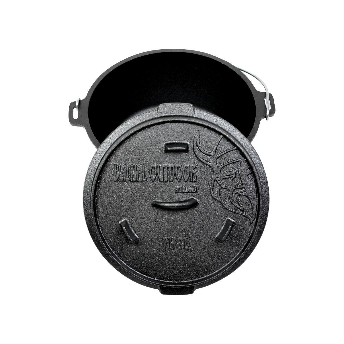 Valhal Dutch Oven s nogicama izrađen je od visokokvalitetnog lijevanog željeza, idealnog za kuhanje na svim izvorima topline. Može se zagrijati na vrlo visoke temperature, ravnomjerno distribuira toplinu i izvrsno je zadržava, što ga čini savršenim za dugotrajno kuhanje, pečenje i pirjanje.